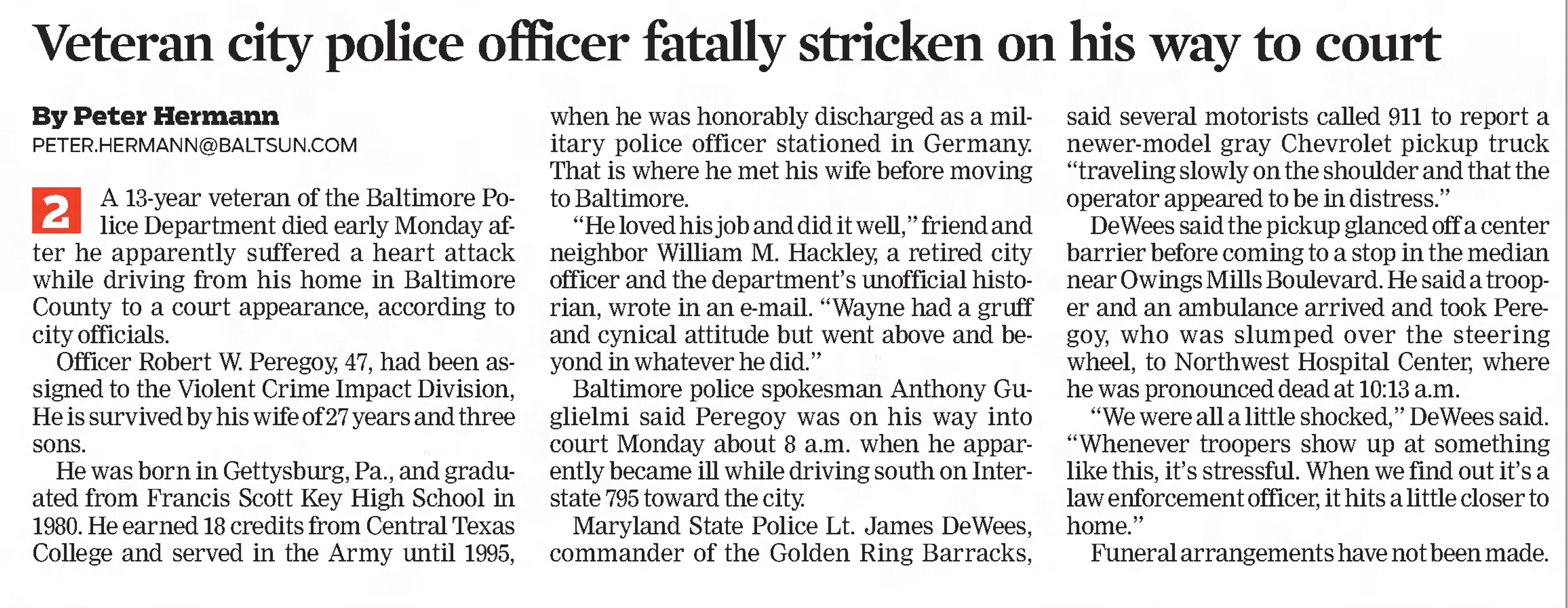 May he never be forgotten as "His service "Honored" the City of Baltimore and the Police Department." God bless and RIP